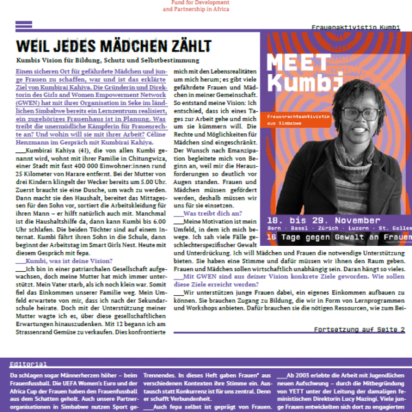 Frauen und Mädchen in Simbabwe haben ein Recht auf Sicherheit, Bildung und Selbstbestimmung.