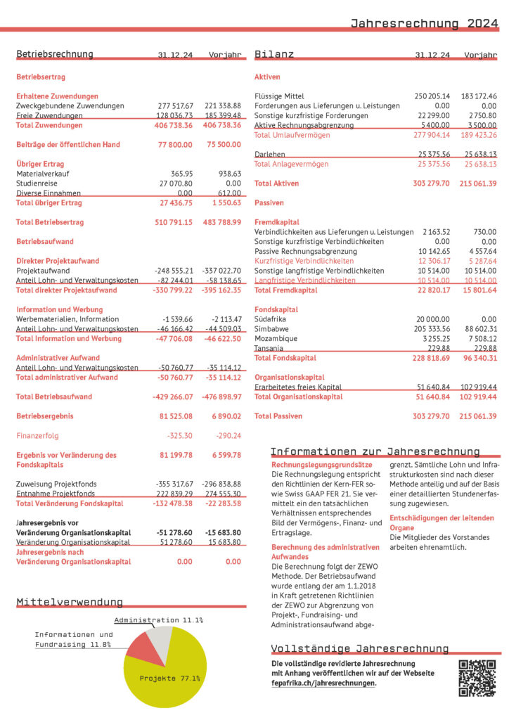 Die Rechnungslegung erfolgt gemäss den Anforderungen der ZEWO.