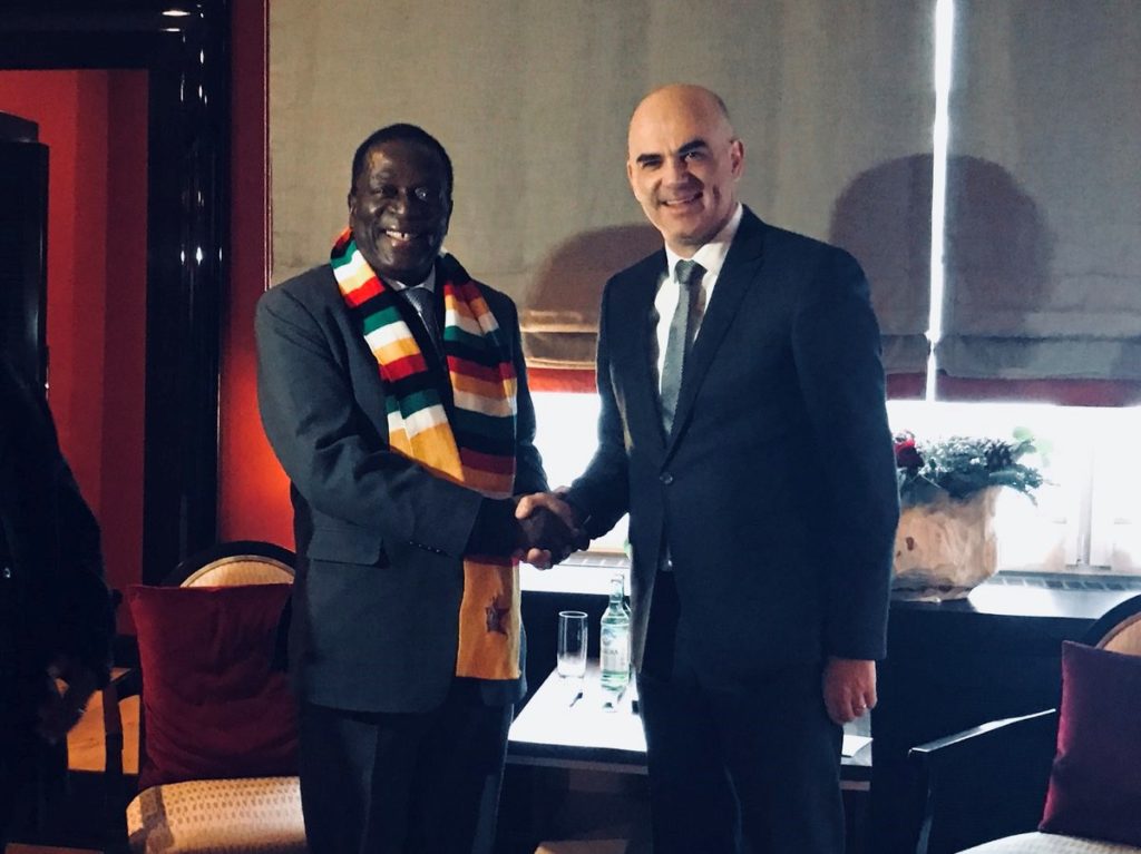 Präsident Mnangagwa und Bundespräsident Alain Berset trafen sich am WEF in Davos, hier auf einem Foto, das von Alain Berset getwittert wurde.