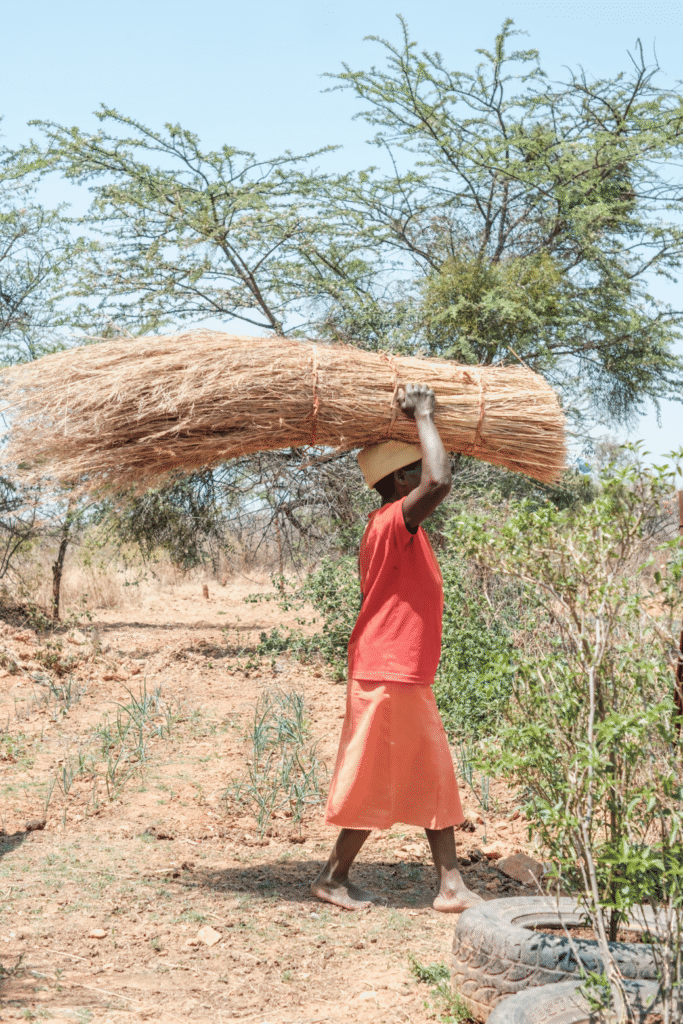 Das Decken mit Reet gehört zum kulturellen Erbe Simbabwes – und Stellas Arbeit sorgt dafür, dass dieses Handwerk weiterlebt. Ihre Arbeit ist nicht nur körperlich, sondern auch kulturell, generationenübergreifend und tief in Stolz verwurzelt.