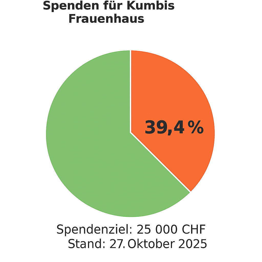 Gemeinsam wollen wir 25.000 CHF sammeln, um den Bau und den Betrieb von Kumbis Frauenhaus zu ermöglichen. Damit schaffen wir einen geschützten Ort, an dem Mädchen und junge Frauen Sicherheit, Bildung und Hoffnung finden.